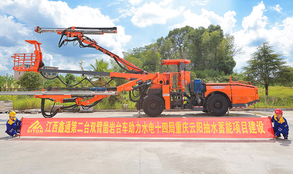 鑫通雙臂鑿巖臺車助力水電十四局重慶云陽抽水蓄···
