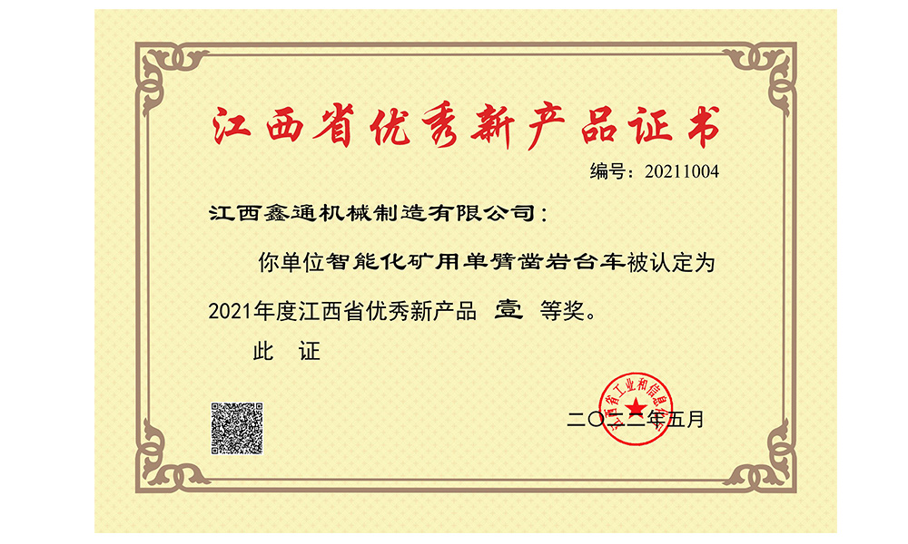江西省優(yōu)秀新產(chǎn)品證書